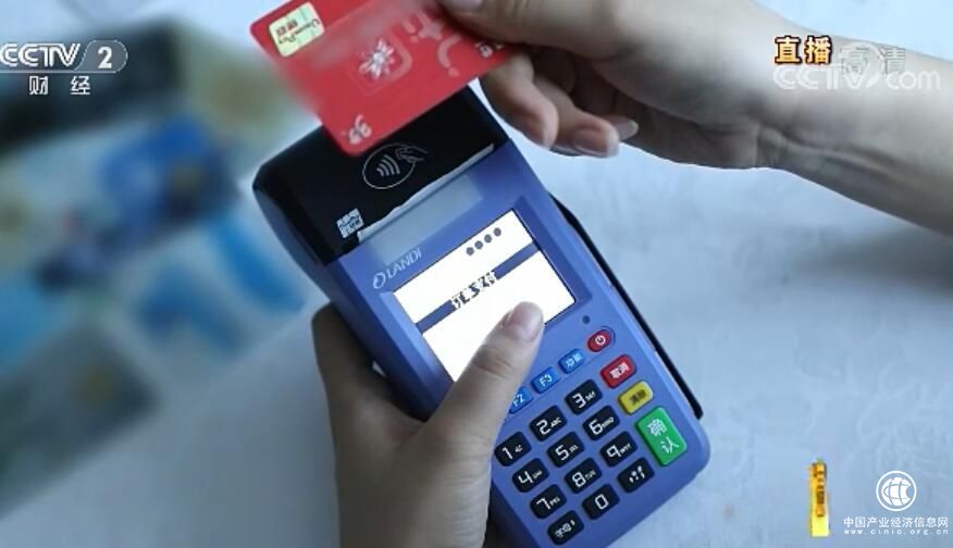 記者將POS機與銀行卡間隔5厘米,成功完成支付。