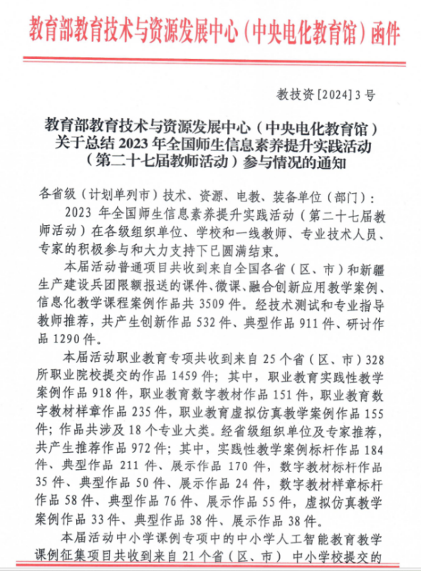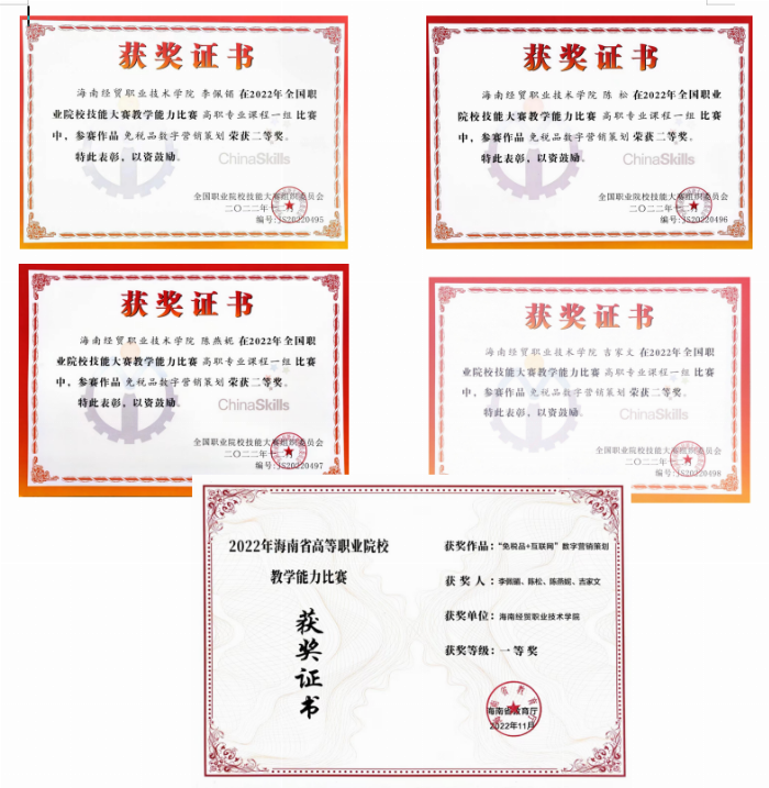 課程改革成效顯著,榮獲全國職業(yè)院校技能大賽教學能力比賽國賽二等獎和省賽一等獎,并于2023年參加教育部教育技術(shù)與資源發(fā)展中心舉辦的全國師生信息素養(yǎng)提升實踐活動,獲得實踐性教學案例“標桿作品”稱號。