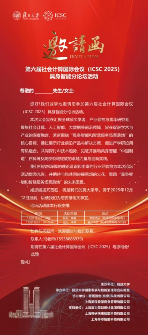 當(dāng)大數(shù)據(jù)與大模型深度滲透科研全場景,傳統(tǒng)博士科研范式正經(jīng)歷系統(tǒng)性革新與重構(gòu)。第六屆社會計(jì)算國際會議(6th International Conference on Social Computing,簡稱ICSC 2025)于2025年12月12日至2025年12月13日在復(fù)旦大學(xué)江灣校區(qū)舉行。作為 ICSC 2025 具身智能分論壇的支持單位,上海領(lǐng)研未來智能科技有限公司憑借在科研教育領(lǐng)域的多年深耕,攜手旗下品牌考博貓,在這場匯聚全球頂尖學(xué)者、產(chǎn)業(yè)領(lǐng)袖與青年研究者的高端學(xué)術(shù)盛會上,為科研工作者解鎖智能時代的科研新路徑,助力學(xué)術(shù)創(chuàng)新煥發(fā)全新活力。