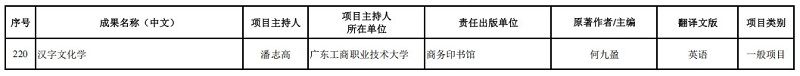 12月23日,全國哲學(xué)社會(huì)科學(xué)工作辦公室公布了2025年國家社會(huì)科學(xué)基金中華學(xué)術(shù)外譯項(xiàng)目立項(xiàng)名單,共計(jì)255項(xiàng)。廣東工商職業(yè)技術(shù)大學(xué)外國語學(xué)院院長潘志高教授主持申報(bào)的《漢字文化學(xué)》成功獲批立項(xiàng)。這是該校首次獲批國家社會(huì)科學(xué)基金中華學(xué)術(shù)外譯項(xiàng)目,實(shí)現(xiàn)了學(xué)校在此類項(xiàng)目上“零的突破”,也是目前全國唯一一所獲批中華學(xué)術(shù)外譯項(xiàng)目立項(xiàng)的職業(yè)本科院校,標(biāo)志著該校哲學(xué)社會(huì)科學(xué)研究的國際化水平和學(xué)術(shù)傳播能力邁上了新臺(tái)階。