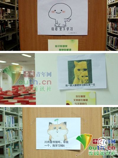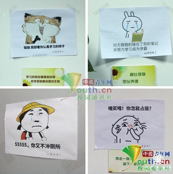 圖為張貼在該校圖書館的“表情包”。中國青年網(wǎng)通訊員謝菲攝