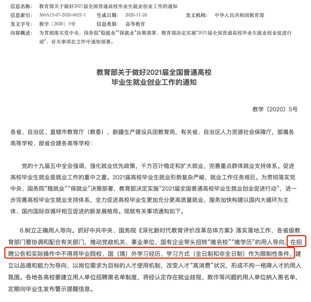 近日,教育部發(fā)出通知,明確指出招聘中不得將全日制作為限制性條件。消息一出,網(wǎng)友眾說紛紜,支持和反對的聲音此起彼伏。但無論站在哪一方,這則通知能夠緩解一定就業(yè)壓力是不爭的事實(shí),給更多包括畢業(yè)生在內(nèi)的年輕群體提供了就業(yè)的機(jī)會。