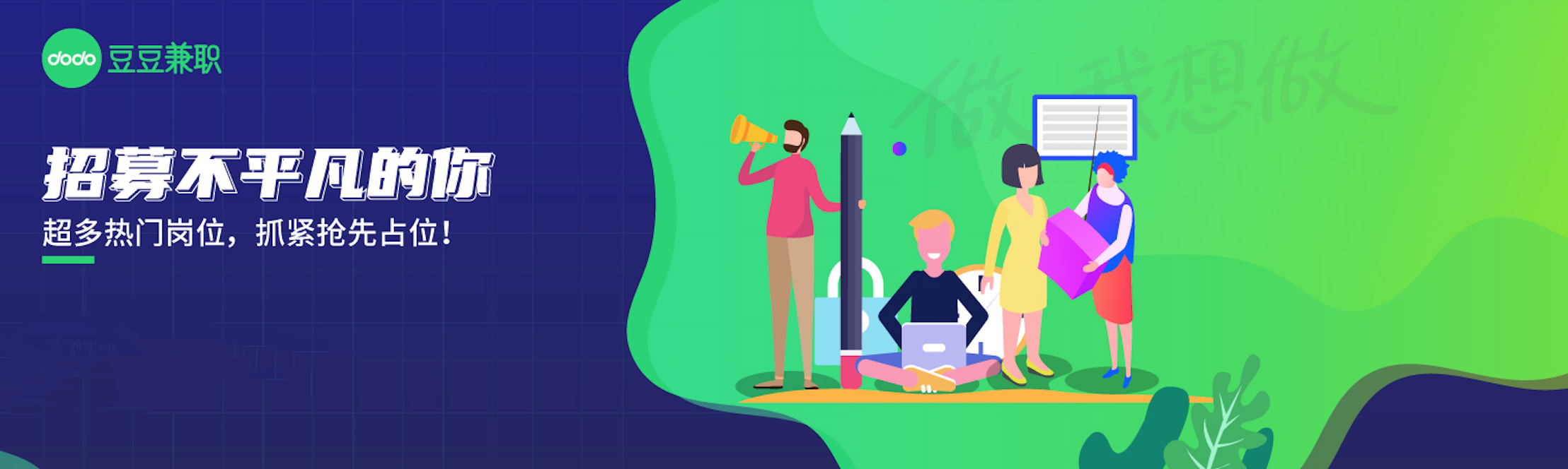 與此同時(shí),現(xiàn)下年輕人受文化和時(shí)代環(huán)境的影響,一定程度上培養(yǎng)了個(gè)人靈活就業(yè)的習(xí)慣,做兼職、搞副業(yè)成為常見現(xiàn)象。在年輕人兼職平臺“豆豆兼職“上可以看到,有很多崗位如文案、新媒體運(yùn)營、設(shè)計(jì)、服務(wù)生、配送員等適合年輕人可以靈活工作的兼職崗位。據(jù)豆豆兼職調(diào)研數(shù)據(jù)顯示,67.5%的年輕人(含大學(xué)生)會考慮長期從事兼職工作,27.0%的人以需要增加收入為目的,22.5%的人是因時(shí)間原因只能做兼職。