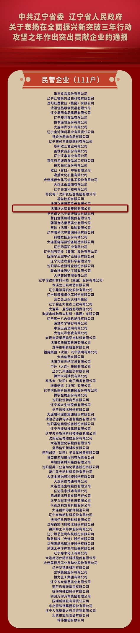 今天,我們懷著無比自豪的心情宣布:沈陽遠大鋁業(yè)集團作為111家受表彰的民營企業(yè)之一,榮登遼寧省委省政府通報表揚名單!這份沉甸甸的榮譽,是對我們堅守實業(yè)報國初心、勇?lián)衽d使命的最高褒獎。