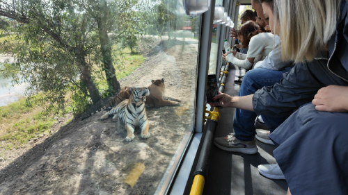 “坐著酷炫的觀光車,零距離感受東北虎的王者之風(fēng),真的太震撼”“大通透玻璃設(shè)計(jì),視野開闊得不得了,拍照打卡也是美美噠,真是太棒了!”“座椅布置也是超貼心的,兩邊面向的設(shè)計(jì),能近距離觀賞東北虎的威猛身姿,甚至可以投喂呢!和東北虎來個(gè)親密接觸,這體驗(yàn)感絕對(duì)杠杠的!” ……