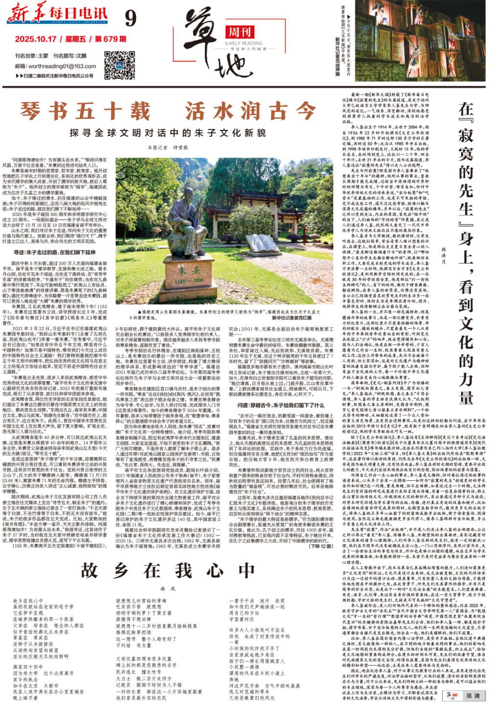 如今,朱子掬過的清水,仍在福建的山谷中蜿蜒流淌;朱子識(shí)得的姹紫嫣紅,還在八閩大地的輕風(fēng)中搖曳生姿;朱子走過的路,就在我們腳下不斷延伸……