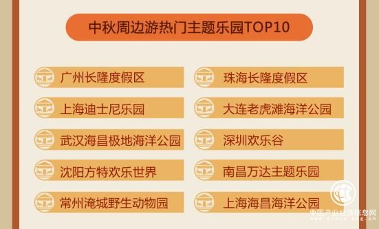 由于中秋假期以家庭客群為主,帶孩子打卡主題樂園成為熱門之選,其中,廣州長隆度假區(qū)、珠海長隆度假區(qū)、上海迪士尼樂園、大連老虎灘海洋公園、武漢海昌極地海洋公園、深圳歡樂谷、沈陽方特歡樂世界、南昌萬達(dá)主題樂園、常州淹城野生動(dòng)物園、上海海昌海洋公園等樂園景區(qū)受到追捧。