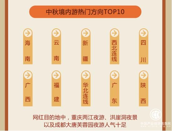 《報(bào)告》顯示,海南、云南、新疆、西北連線、四川、廣西、福建、華北連線、廣東、陜西上榜“2019中秋境內(nèi)游熱門方向TOP10”榜單。