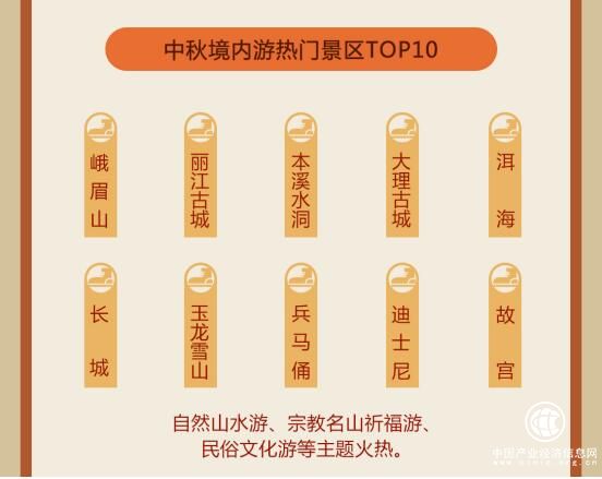 整體而言,中秋假期期間境內(nèi)游熱門景區(qū)TOP10包括峨眉山、麗江古城、本溪水洞、大理古城、洱海、玉龍雪山、上海迪士尼樂園、八達(dá)嶺長城、秦始皇帝陵兵馬俑博物院、故宮,自然山水游、宗教名山祈福游、民俗文化游等主題火熱。此外,追尋層林盡染的秋色,也是游客的中秋出游熱門之選,內(nèi)蒙古額濟(jì)納旗胡楊林的璀璨、新疆喀納斯白樺林與西伯利亞落葉松的金黃、云南騰沖銀杏村的繽紛、四川稻城亞丁的彩色之美,都令游客流連忘返。