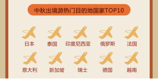 此外,中秋假期雖短,也未能擋住出境游愛好者的出游熱情?!秷?bào)告》顯示,日本、泰國、印度尼西亞、俄羅斯、法國、意大利、新加坡、瑞士、德國、越南位居中秋十大出境游熱門目的地。其中,四季皆宜、秋季可賞秋的日本高居榜單首位;也有不少游客前往泰國過了一個(gè)別開生面的“祈月節(jié)”