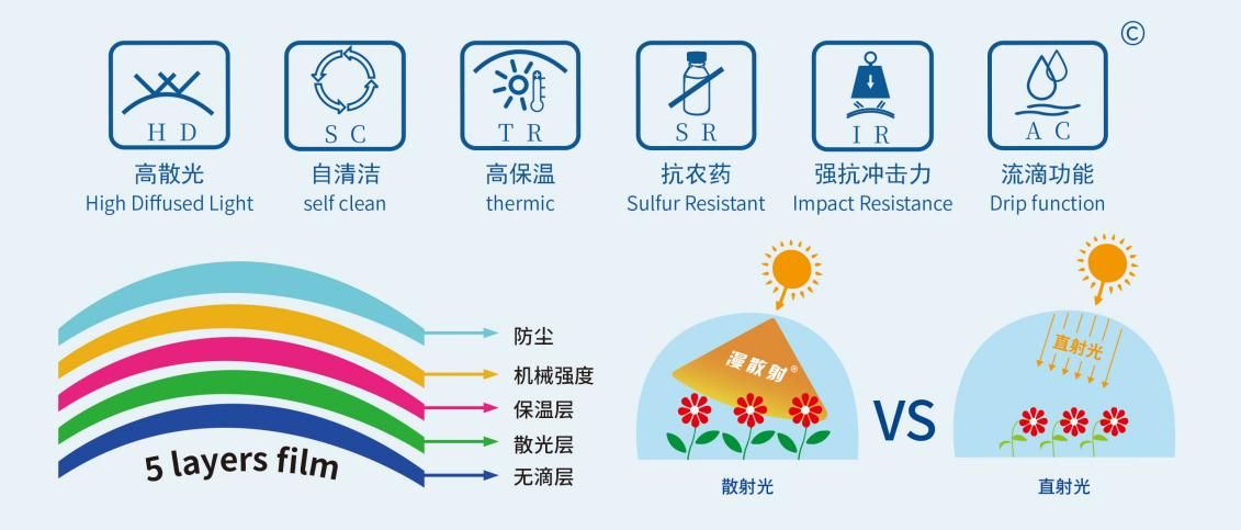 雷馬系列農(nóng)膜產(chǎn)品以漫散射?技術(shù)為核心,維持92%充足透光率的同時(shí),能將強(qiáng)直射光線轉(zhuǎn)化為柔和均勻的散射光,既保證作物獲得充足光照,又有效避免了因強(qiáng)光直射導(dǎo)致的葉片灼傷問題。目前漫散射?技術(shù)已經(jīng)獲得專利認(rèn)可,被廣泛應(yīng)用在雷馬系列專用膜產(chǎn)品之中。