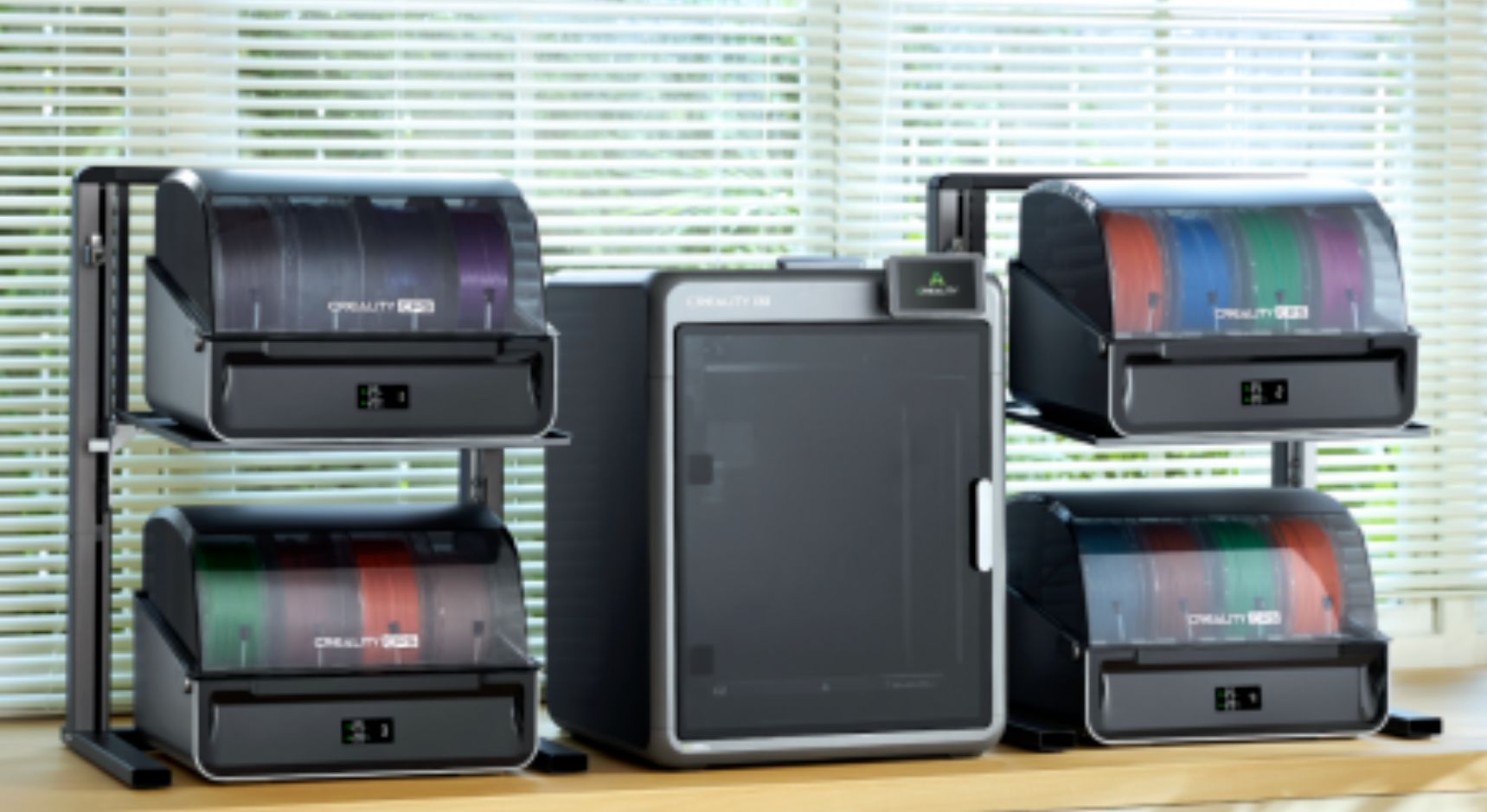 全新FDM 3D 打印機K2 系列覆蓋個人創(chuàng)作到專業(yè)研發(fā)全場景需求,支持官方智能耗材管理系統(tǒng)(CFS),單機多色打印輕松實現(xiàn),4臺CFS并聯(lián)可解鎖 16 色打印。