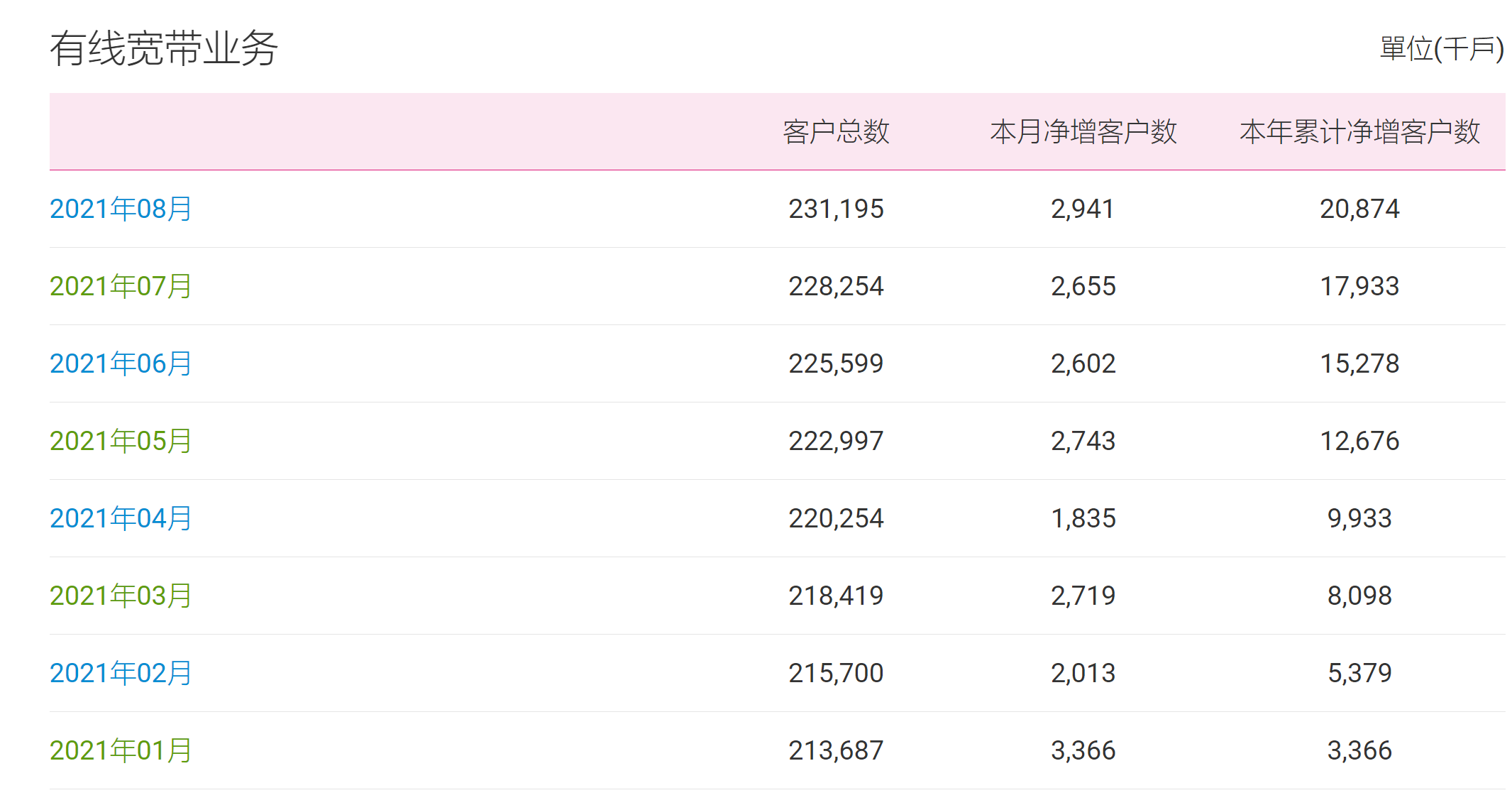 當月,中國移動有線寬帶客戶數(shù)凈增294.1萬戶,累計達到2.31195億戶。
