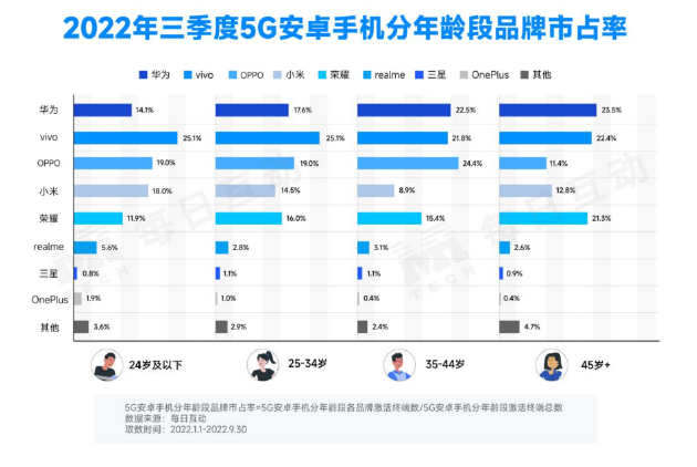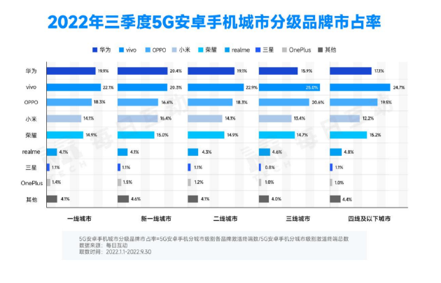 vivo受34歲及以下青年人群歡迎 華為在一線、新一線城市中具備影響力