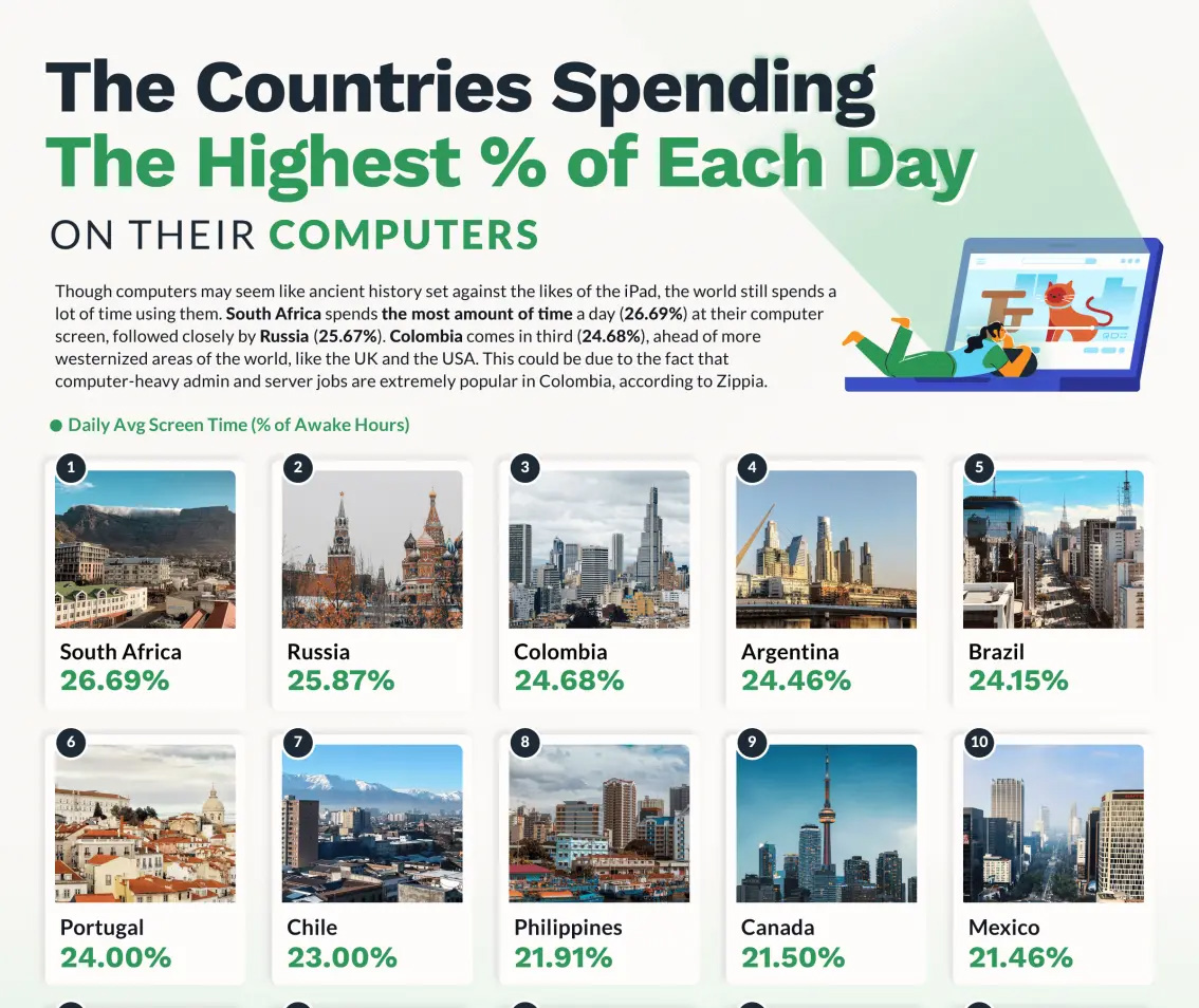 如果算上電腦和平板的話,我們每天盯著屏幕的時間會快速上升。報告中提及的前 10 榜單列表如下: