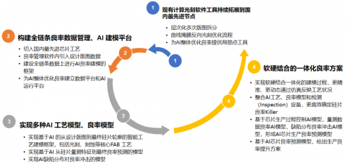 ·Fab良率數(shù)據(jù)分析產(chǎn)品方面:我們將利用AI技術(shù)打造一系列良率分析AI工具,例如軟硬結(jié)合的一體化工藝建模工具,建立從設(shè)計版圖到芯片良率的全鏈條數(shù)據(jù)平臺。在此數(shù)據(jù)平臺上,建立多種AI工藝模型和AI良率模型,實現(xiàn)軟硬結(jié)合的智能化檢測解決方案。