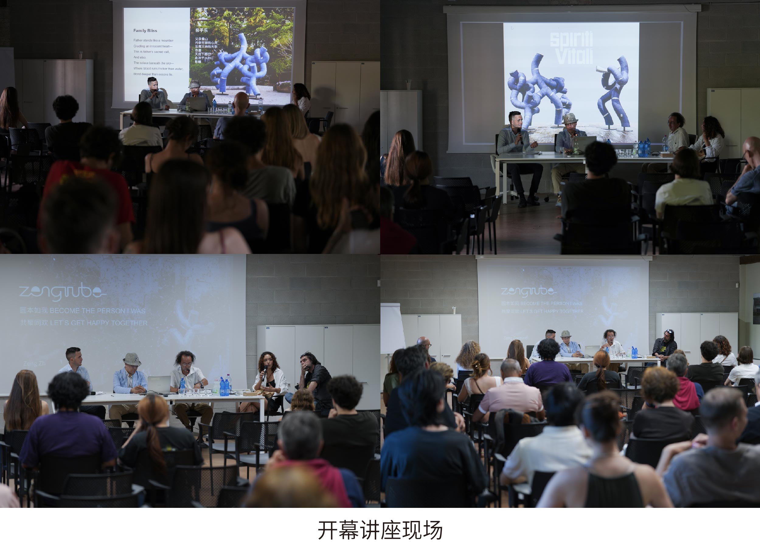 意大利當(dāng)?shù)貢r(shí)間7月5日17 : 30,在開幕講座環(huán)節(jié),曾振偉教授闡釋其藝術(shù)創(chuàng)作觀:“圓管人剝離了種族、膚色等排他性符號(hào),用人類共通的肢體情緒語(yǔ)言構(gòu)建普世情感紐帶。”其獨(dú)創(chuàng)的視覺符號(hào)體系,既根植于五千年?yáng)|方文明底蘊(yùn),又以 “無(wú)界大愛”回應(yīng)全球化語(yǔ)境下的文化主體性命題。