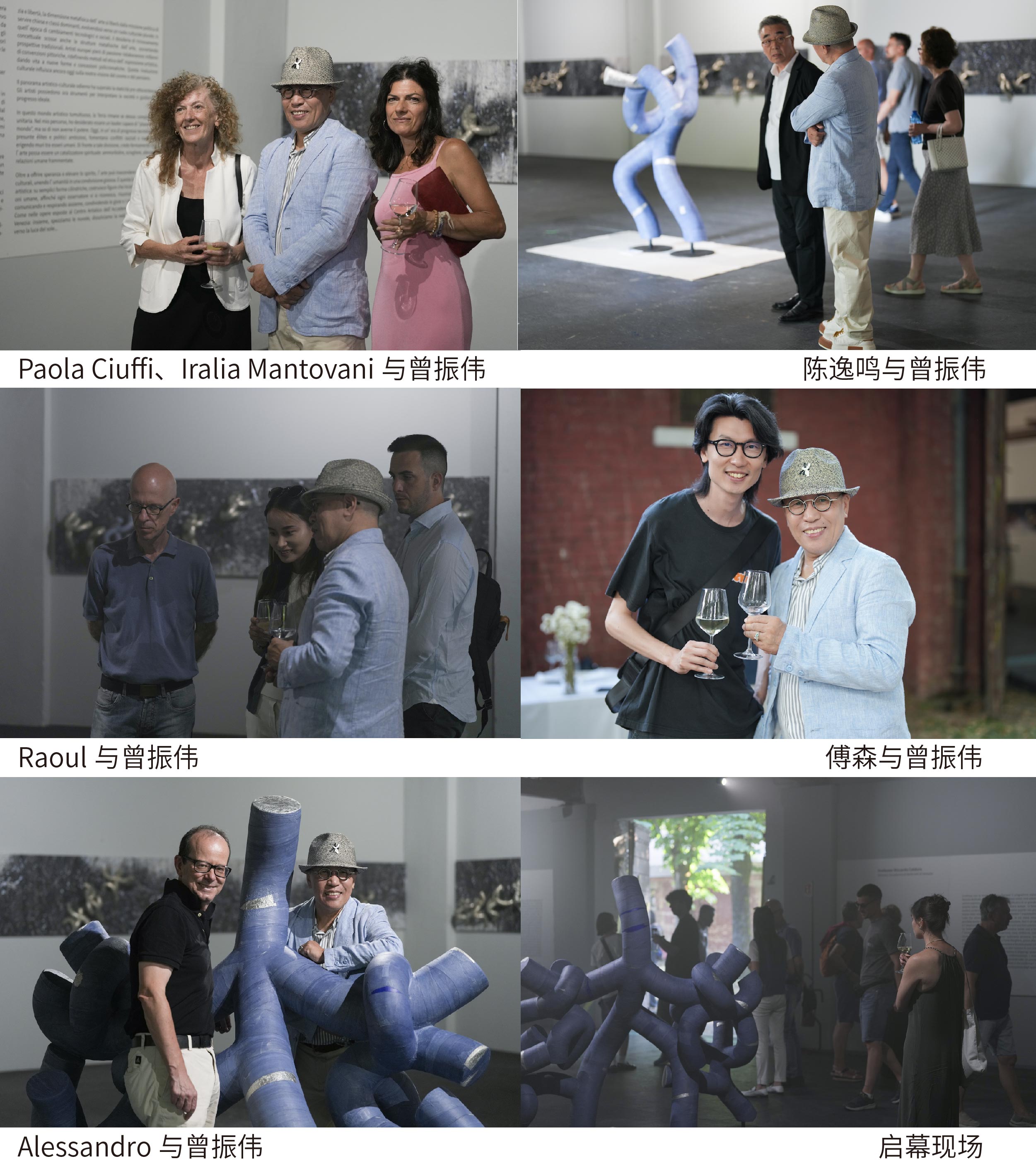 19:00的開幕酒會(huì)隨著一道破空而出的銅管樂章啟幕——策展人之子Martino Fraternali立于圓管人陣列中即興演奏小號(hào),充滿張力的爵士旋律為這場(chǎng)藝術(shù)盛宴增添了靈動(dòng)的韻律。現(xiàn)場(chǎng)星光熠熠,開幕現(xiàn)場(chǎng)匯集了眾多國(guó)際藝壇重量級(jí)嘉賓:威尼斯美術(shù)學(xué)院院長(zhǎng)Riccardo Caldura教授;本次展覽總策展人、威尼斯美術(shù)學(xué)院副院長(zhǎng)Paolo Fraternali 教授;Forte Marghera 基金會(huì)主席Stefano Mondini;意大利《晚郵報(bào)》主編Alessandro;威尼斯美術(shù)學(xué)院教授Stefano Mancini;威尼斯美術(shù)學(xué)院博士、學(xué)生展覽策展人Cinzia Tusini;著名中國(guó)油畫家陳逸鳴;威尼斯大學(xué)博士、國(guó)際策展人傅森;收藏家、威尼斯華德福教育創(chuàng)始人Paola Ciuffi;意大利藏家Raoul;藝術(shù)評(píng)論家Iralia Mantovani教授以及馬耳他美院教授等知名學(xué)者名流的到來(lái),共同見證了這場(chǎng)藝術(shù)盛宴。