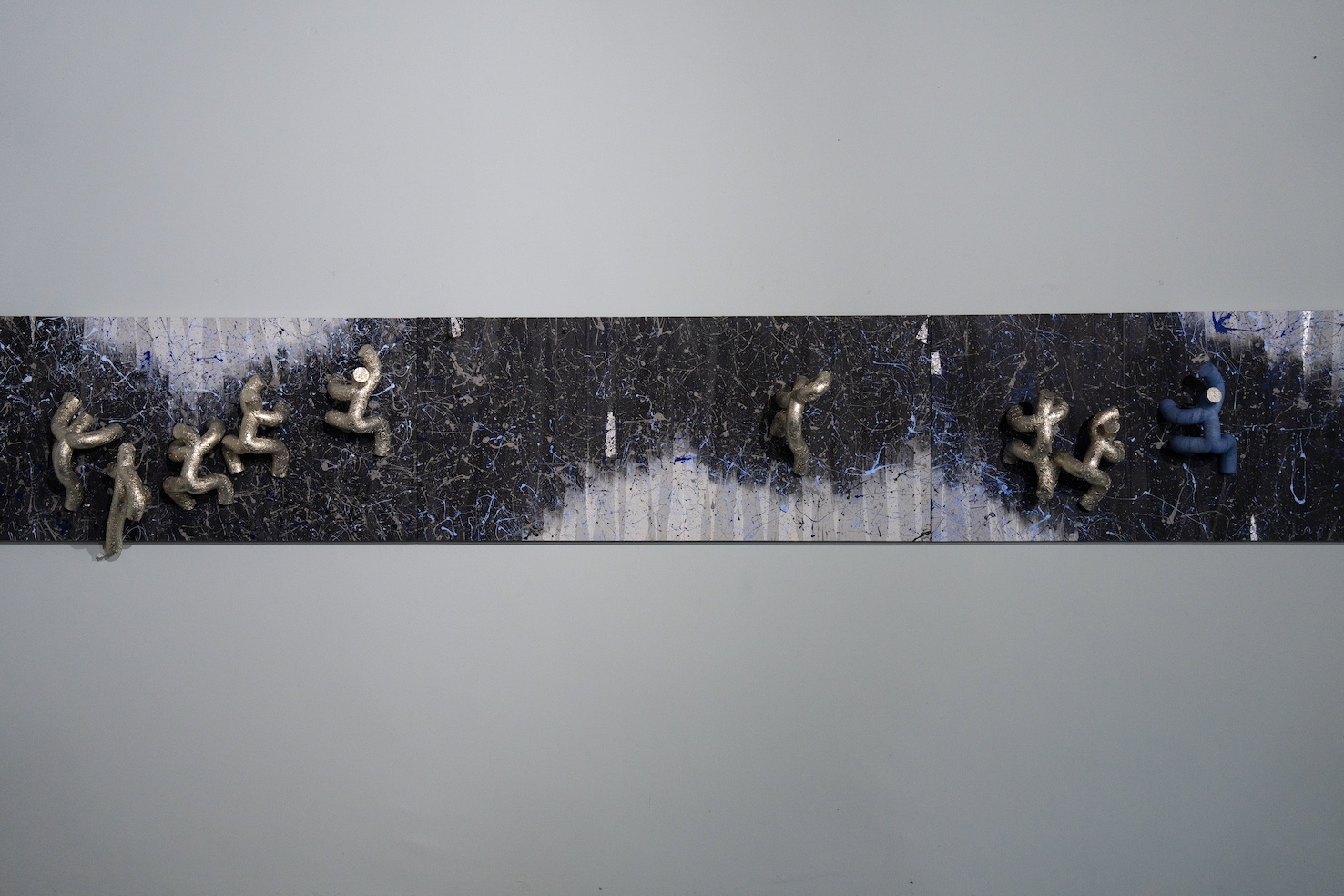 展廳核心位置安放著兩尊雕塑——《親子樂》(Family Bliss)與《爵士手》(Jazz Player),環(huán)伺其周的是無(wú)數(shù)極簡(jiǎn)的圓管人,仿佛正奮力攀援生命的峰巒。這群“攀登者”凝練了植根于東方美學(xué)的輕盈哲思,也開啟了對(duì)普世共生之道的探討。“我們合力撥開云霧,驅(qū)散迷障,朝向光明攀升”藝術(shù)家如是闡述。它們是我們時(shí)代的圖騰,是抽象的存在體,是需要傾聽的在場(chǎng)者——策展人保羅教授將其定義為“通往至福的生命靈韻,其星靈之軀充盈神性,在與自我的交融中臻于平衡與泰然”。它們象征著人與自然、科技與冥想、肉身與精神之間可能達(dá)成的和諧。