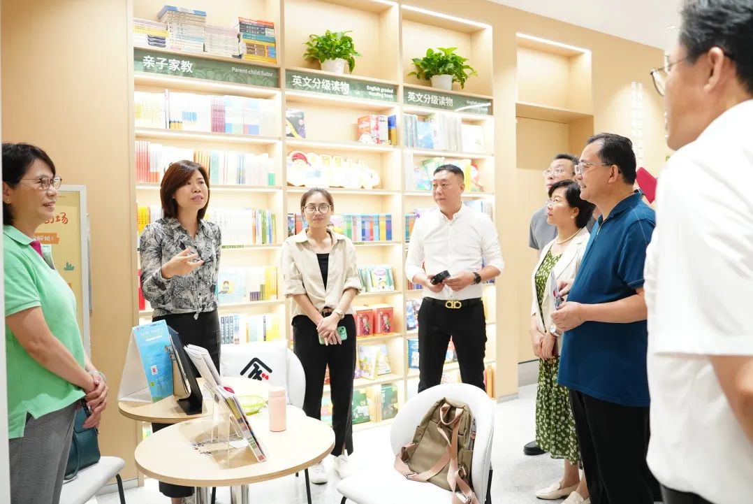 考察過程中,句象書店主要業(yè)務(wù)負(fù)責(zé)人引導(dǎo)調(diào)研組一行實(shí)地參觀了書店的多元功能空間。從精心設(shè)計(jì)的主題書架、親子閱讀區(qū),到融合了自習(xí)、研討、小型沙龍功能的共享空間,再到定期舉辦家長課堂、教育講座、親子活動(dòng)的句象劇場,書店負(fù)責(zé)人詳細(xì)介紹了句象書店“連接家庭、學(xué)校與社區(qū)”的經(jīng)營理念和豐富實(shí)踐,并向調(diào)研組系統(tǒng)匯報(bào)了書店在推動(dòng)家校社協(xié)同育人方面的具體舉措。姬兆亮及委員們不時(shí)就句象書店的空間利用率、活動(dòng)組織頻率、參與人群特征、與周邊學(xué)校及社區(qū)聯(lián)動(dòng)情況等細(xì)節(jié)進(jìn)行詢問,對書店?duì)I造出的濃厚學(xué)習(xí)氛圍和溫馨的文化氣息表示贊賞。