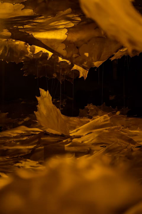 展覽聚焦于補天行動的第八十日——蒼穹即將完整的臨界時刻。藝術家運用天然材料與綜合媒材,塑造出象征“天空裂痕”的空間意象。作品通過高度感官化的藝術語言,將文本神話轉化為可觸可感的身體經(jīng)驗,邀請觀眾進入介于破壞與修復、混沌與秩序之間的閾限空間,串聯(lián)起遠古想象與當下感知的儀式現(xiàn)場。觀眾在穿行、觸摸中,不僅可以直觀感受到材料的生命力,更在互動中開啟一場跨越古今的時空之旅,思考與聆聽“文明回響”——古老智慧從未遠離,它始終與當代人的精神世界緊密相連。