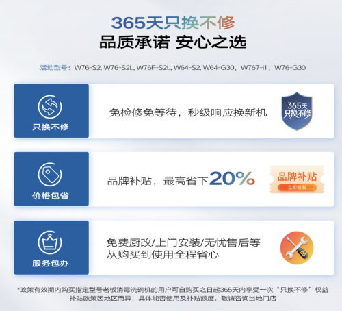 在產(chǎn)品之外,老板消毒洗碗機更將“中國標(biāo)準(zhǔn)”延伸至服務(wù)與行業(yè)生態(tài)層面,推出消毒洗碗機“365天只換不修”品質(zhì)承諾,展現(xiàn)企業(yè)對自身品質(zhì)的自信,也重新定義了家電服務(wù)的標(biāo)桿。該政策意味著消費者在購買一年內(nèi)出現(xiàn)非人為質(zhì)量問題,可直接換新,無需經(jīng)歷繁瑣的維修流程。全國范圍內(nèi)數(shù)千個服務(wù)網(wǎng)點、24小時在線響應(yīng)、快速上門安裝等舉措,共同構(gòu)建了一套高效、可靠的服務(wù)體系,徹底消除用戶的后顧之憂。