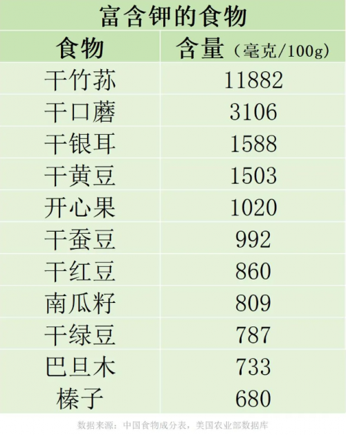 2、富含鉀的食物