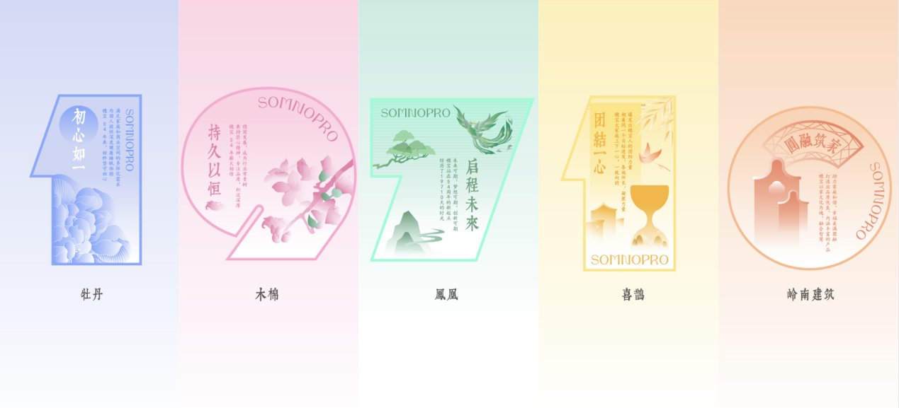 本次跨界合作,梁老師將廣繡中寓意“團圓承托”的代表性的文化符號與穗寶54周年慶“19710”符號相結合,如象征吉祥的鳳凰、寓意喜訊的喜鵲以及凸顯廣東特色的木棉花等刺繡紋樣巧妙融入穗寶家居產品設計。穗寶54周年限定的每一種精美吉祥的花紋也同樣寄托著穗寶集團對消費者家庭幸福吉祥的祝福與祈愿。