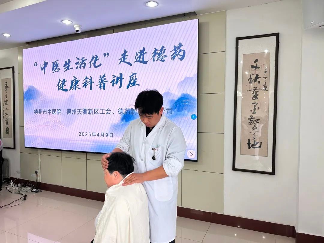 為弘揚(yáng)中醫(yī)藥文化,推廣中醫(yī)養(yǎng)生理念,讓中醫(yī)藥更好地服務(wù)企業(yè)職工健康,4月9日,德州市中醫(yī)院組織康復(fù)醫(yī)學(xué)科和耳鼻喉科專家團(tuán)隊(duì)走進(jìn)德州德藥制藥有限公司,開(kāi)展“中醫(yī)生活化”健康科普活動(dòng),為企業(yè)職工送去專業(yè)的中醫(yī)服務(wù)。