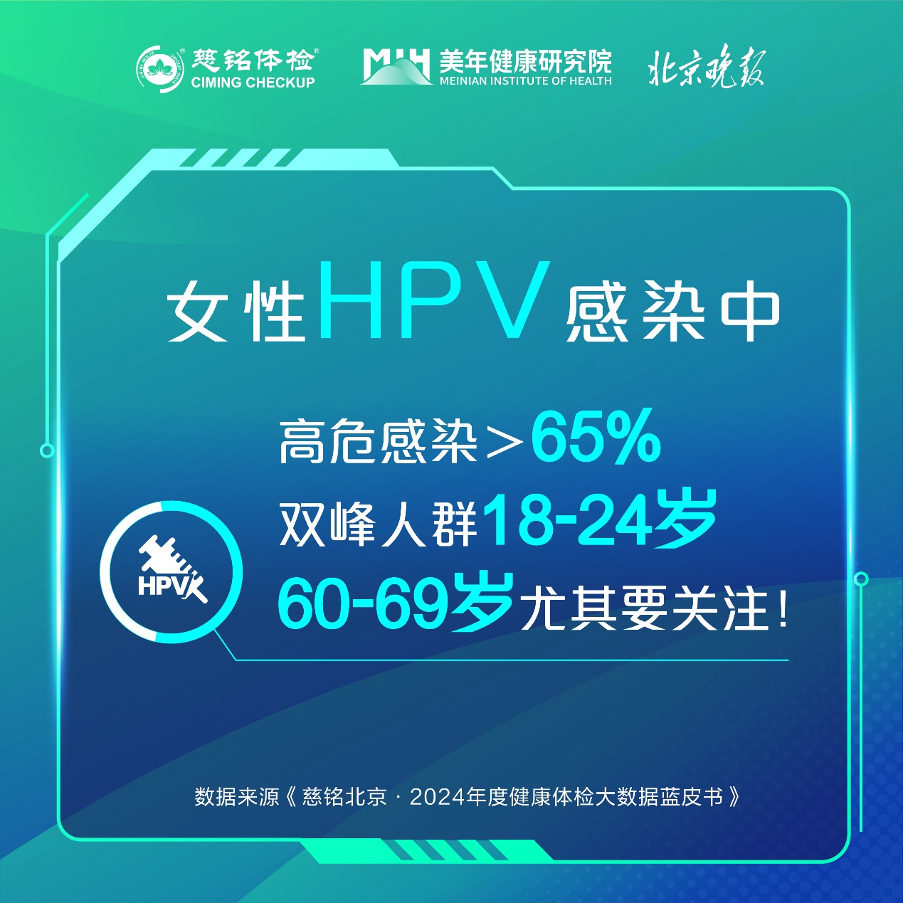 《藍(lán)皮書》顯示,女性HPV感染檢出率為 15.1%,其中67.1%的女性為高危型 HPV 感染,這兩個數(shù)據(jù)和2023年相比,均呈上升趨勢,且隨著年齡增長有所波動,檢出率最高的兩個年齡段為18~24 歲和 60~64 歲。