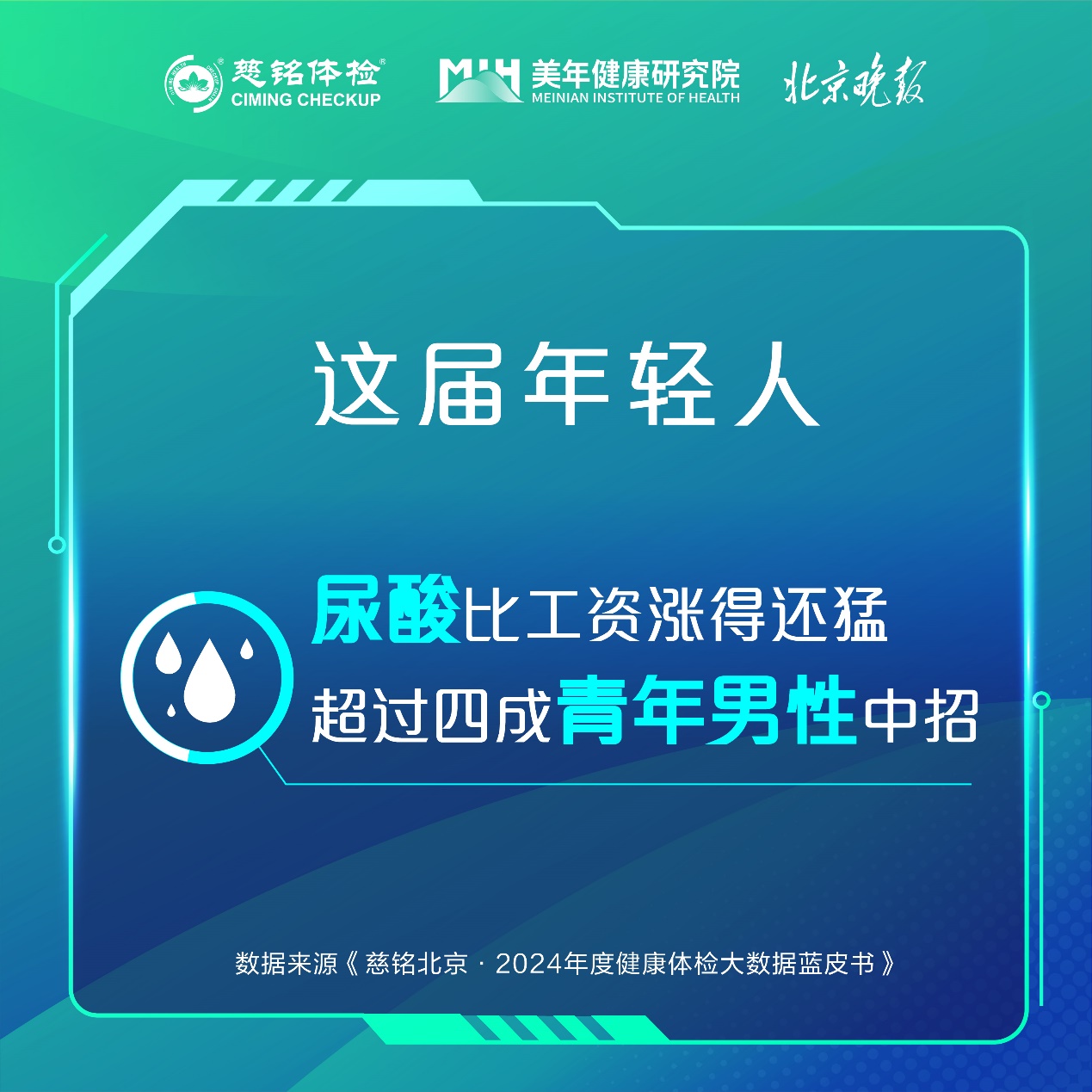 《藍(lán)皮書》顯示,男性高尿酸血癥檢出率為32.7%,女性高尿酸血癥檢出率僅為4.4%,18~24歲組的男性高尿酸血癥檢出率高達(dá)47.5%。
