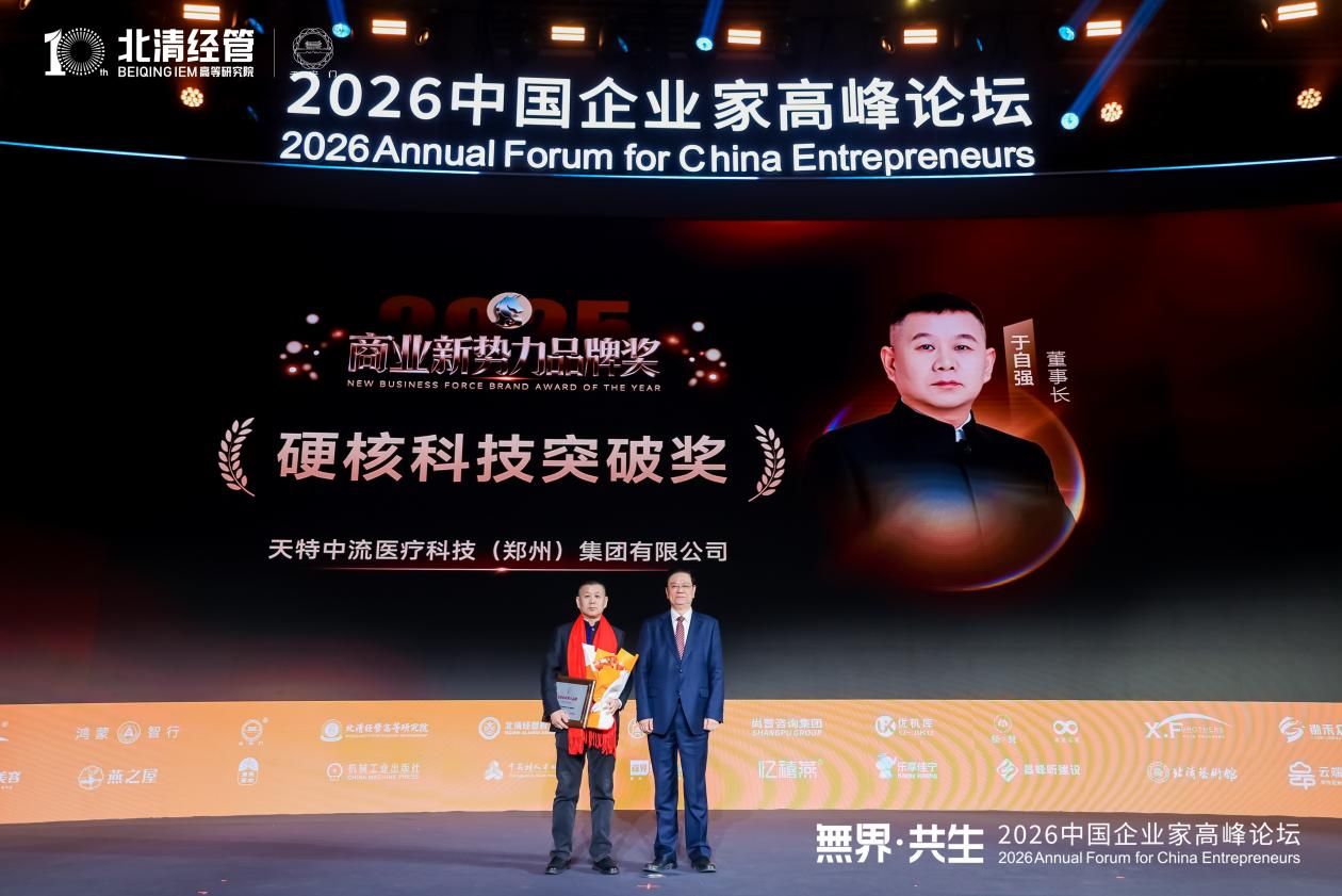 天特中流集團(tuán)創(chuàng)始人、董事長(zhǎng)于自強(qiáng)現(xiàn)場(chǎng)接受獎(jiǎng)項(xiàng)。據(jù)介紹,于自強(qiáng)為醫(yī)療管理博士,碩博連讀于法國(guó)巴黎 PPA 高等商學(xué)院醫(yī)療管理專業(yè),曾任新加坡南洋理工大學(xué)高級(jí)訪問(wèn)學(xué)者,長(zhǎng)期深耕腫瘤無(wú)創(chuàng)治療技術(shù)產(chǎn)業(yè)化領(lǐng)域。其在新加坡南洋理工大學(xué)期間完成的腫瘤無(wú)創(chuàng)治療跨學(xué)科研究成果,為相關(guān)技術(shù)落地提供了理論支撐。