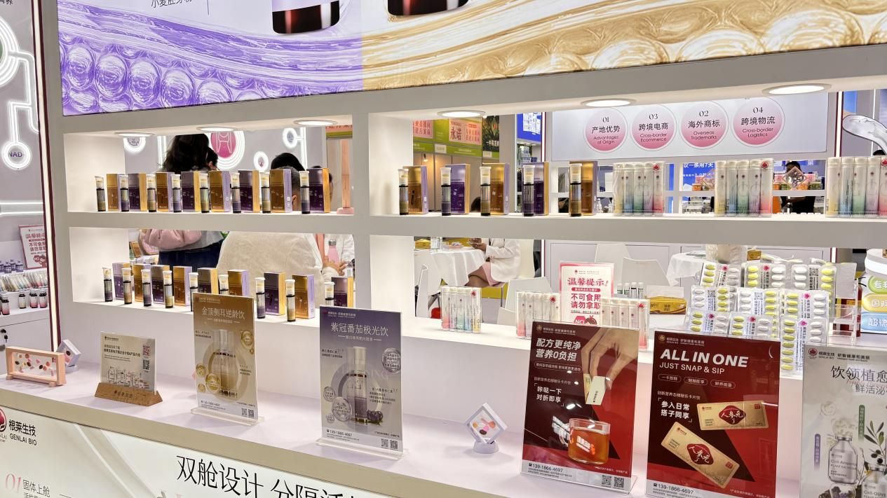 隨著健康與美容產(chǎn)業(yè)的加速融合,功能性食品正從“補(bǔ)充劑”向“生活方式消費品”轉(zhuǎn)型。根萊生技深挖消費場景需求,在本屆美博會上集中展出了迷你杯飲、直飲口袋飲、條包閃充飲、瓶蓋飲、卡片飲、PP精華飲、雙艙飲、壓片營養(yǎng)包等多元創(chuàng)新劑型,以便捷屬性與舒適口感為核心,讓科學(xué)營養(yǎng)自然融入通勤、健身、辦公、社交等全場景。