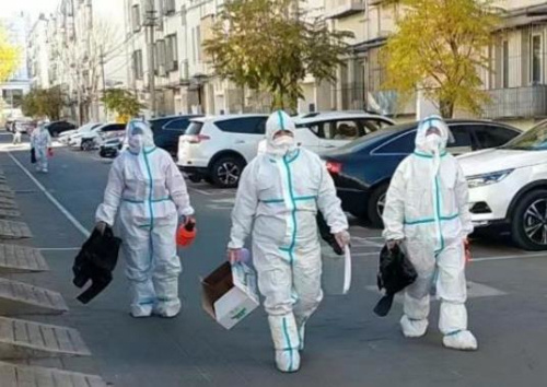 在接到封控管理的通知后,心連心物業(yè)管理公司總經(jīng)理王宏彪第一時間部署防疫工作,抽調(diào)十余人進入管控區(qū)開展工作,隨后又派遣公司副經(jīng)理果慶為隊長支援果園新里北區(qū)。在管控區(qū),他們堅守崗位,守護著社區(qū)“最后一百米”,身背十幾公斤重的消殺器消殺;拿著掃把清理落葉;協(xié)助社區(qū)進行核酸檢測;配送新鮮的果蔬食品……他們無私奉獻,為居民安全保駕護航,竭盡全力守住美好家園。