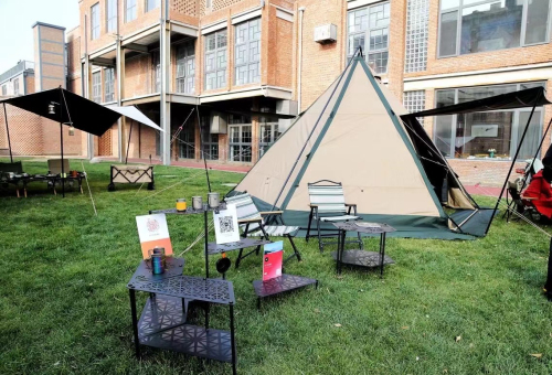 在露營(yíng)裝備展示區(qū),沐浴在冬日的暖陽下,草坪上多款露營(yíng)裝備集結(jié)展示,可參觀、可試用、可咨詢,來自山野戶外的誘惑,激情超燃!