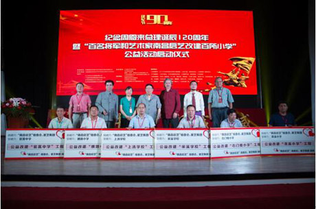 為關(guān)愛祖國下一代,弘揚(yáng)周恩來總理"為中華之崛起而讀書"的偉大志向,8月17日,由中國國際經(jīng)濟(jì)技術(shù)合作促進(jìn)會(huì)城市發(fā)展中心攜九江百藝文化發(fā)展有限公司(百藝百盛)、北京國博家銘文化有限公司、廣東星藝裝飾集團(tuán)股份有限公司、北京西海領(lǐng)袖國際文化發(fā)展有限公司主辦的"紀(jì)念周恩來總理誕辰120周年暨百名將軍和藝術(shù)家南昌啟藝改建百所小學(xué)公益活動(dòng)"在南昌百藝百盛隆重召開。