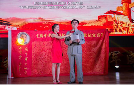 上午十一點(diǎn)整,紀(jì)念周恩來總理誕辰120周年啟動(dòng)儀式隆重揭牌,出席本次活動(dòng)的著名藝術(shù)家,扮演周恩來總理的特型演員張江山先生宣讀了《為中華之崛起而讀書宣言》。