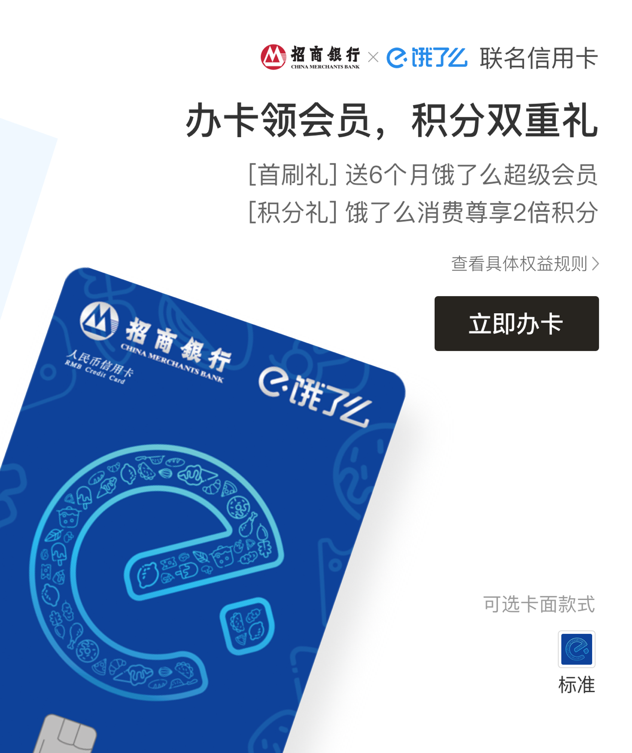 招商銀行x餓了么聯(lián)名信用卡權(quán)益: