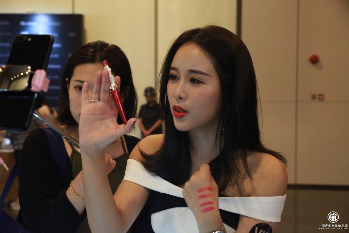 ?。〞r尚博主林珊珊在VIVLAS產(chǎn)品展臺直播試色)