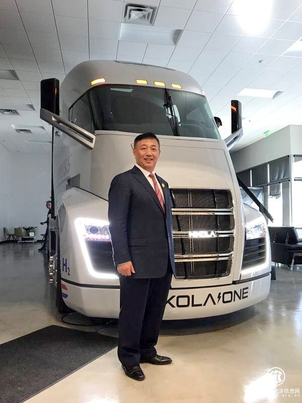 ? 張力軍與Nikola氫能源汽車合影
