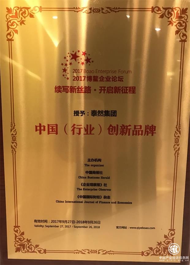 泰然集團(tuán)獲“中國(行業(yè))創(chuàng)新品牌”