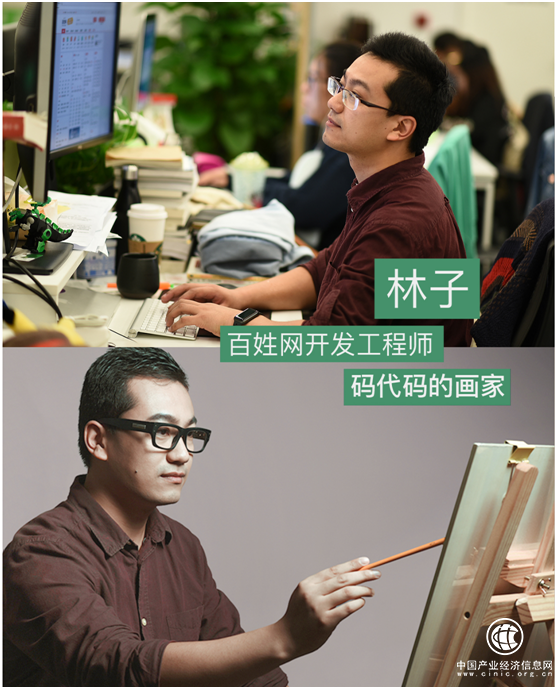 林子碼代碼的姿勢(shì)很挺很標(biāo)準(zhǔn),仿佛用創(chuàng)造藝術(shù)的方法在碼代碼。他在百姓網(wǎng)擔(dān)任開發(fā)工程師,同時(shí)也可能是畫畫最好的碼農(nóng)。