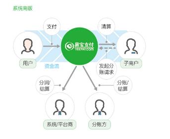 對于需求更復(fù)雜的Saas系統(tǒng)商和平臺商,易寶支付的相關(guān)負(fù)責(zé)人則推薦關(guān)注“大算”的系統(tǒng)商版本。在這個產(chǎn)品中,易寶充當(dāng)資金流中轉(zhuǎn)站的角色,為系統(tǒng)商、平臺商在用戶端提供全場景收單服務(wù),在子商戶和分賬方端可根據(jù)業(yè)務(wù)既定的規(guī)則實現(xiàn)分賬、分潤的資金清分,并對子商戶、分賬方完成自動結(jié)算。