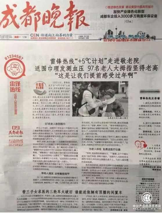 成都晚報(bào)雷鋒熱線攜手益路同行、成都九龍醫(yī)院、成都市仁懷社會工作服務(wù)中心的32名志愿者一起來到新都區(qū)龍橋中心敬老院,為97名老人送去了圍巾,并開展了測血壓、康復(fù)理療、理發(fā)等關(guān)愛活動(dòng)。