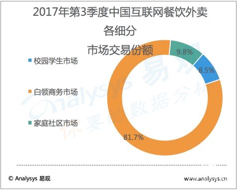 從整體市場看,在線外賣市場已經(jīng)連續(xù)兩個(gè)季度同比增幅達(dá)8成。此前,易觀發(fā)布的2017年第2季度互聯(lián)網(wǎng)餐飲市場報(bào)告顯示,互聯(lián)網(wǎng)餐飲外賣整體交易規(guī)模達(dá)459.5億元人民幣,同比增幅達(dá)81%。分析認(rèn)為,當(dāng)前外賣已成為O2O體量最大、價(jià)值最高的細(xì)分領(lǐng)域,但仍保持較高速度增長,不同于出行、票務(wù)等紅海領(lǐng)域,外賣仍然有非常大的增長空間。