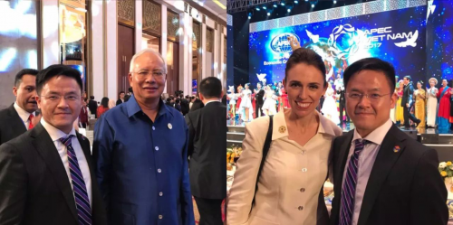 碼隆CEO黃鼎隆與馬來(lái)西亞總理納吉布(左)、新西蘭女總理阿德恩(右)合影