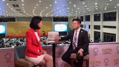 在APEC會(huì)場(chǎng)黃鼎隆博士接受CCTV專(zhuān)訪