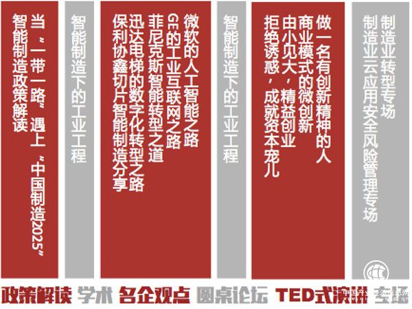 國家政策解讀、智能制造技術(shù)現(xiàn)狀與趨勢、知名外企轉(zhuǎn)型經(jīng)驗分享與智能化之路探索、如何評價與提升企業(yè)智能制造能力、新能源汽車廠商智能化與資本運作的探究、如何構(gòu)建網(wǎng)絡安全環(huán)境……