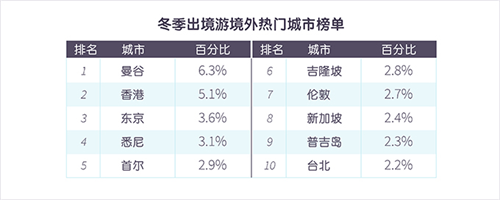 短途目的地受熱捧曼谷位列冬季出境游目的地榜首