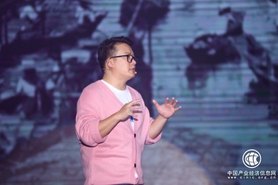 韋杰從舞臺右側(cè)樓梯快步走到舞臺中央和大家打招呼,迎面而來活力的氣息。果不其然,他說到了數(shù)字經(jīng)濟,涉及大數(shù)據(jù)、智能化的發(fā)展,介紹了地球語言。